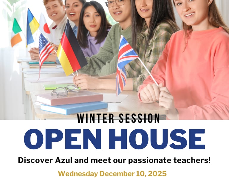 Join us for a special day at Azul Learning Institute! Come explore our Fall session, meet our team, and discover the right language class for you. Take advantage of free trial classes, ask questions, and see how learning a new language can open doors to the world.
